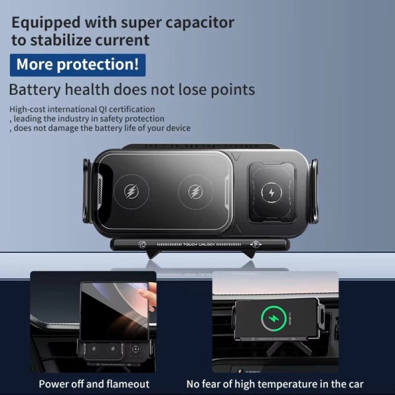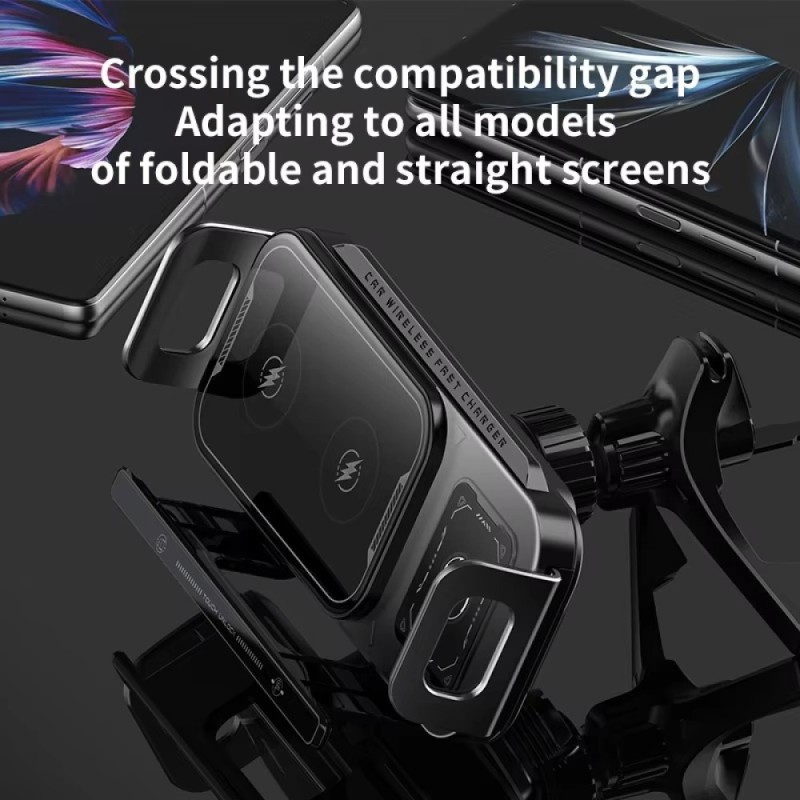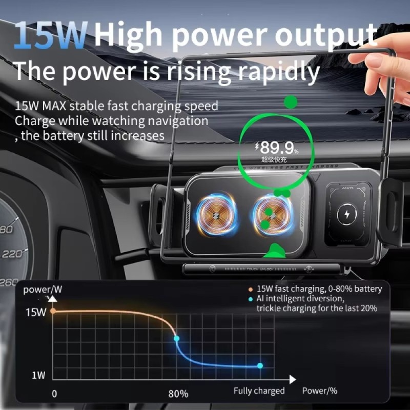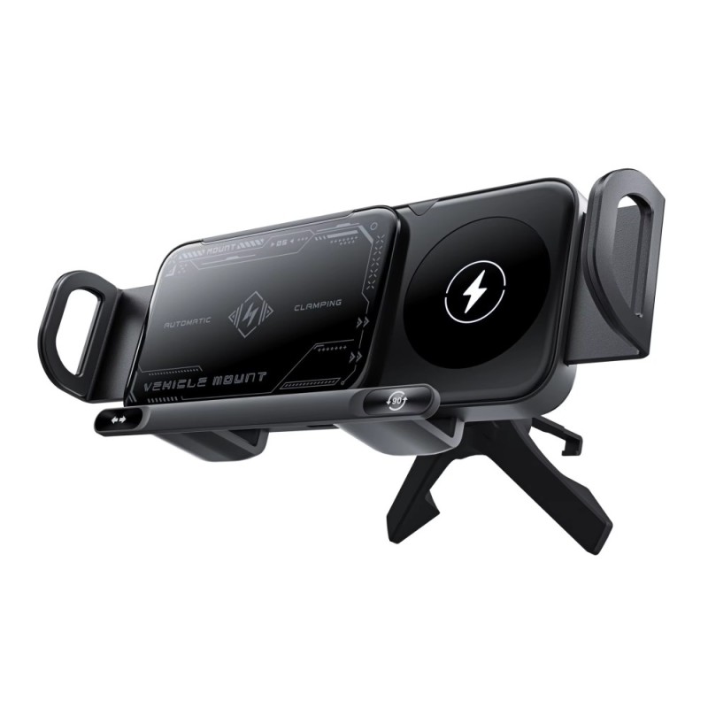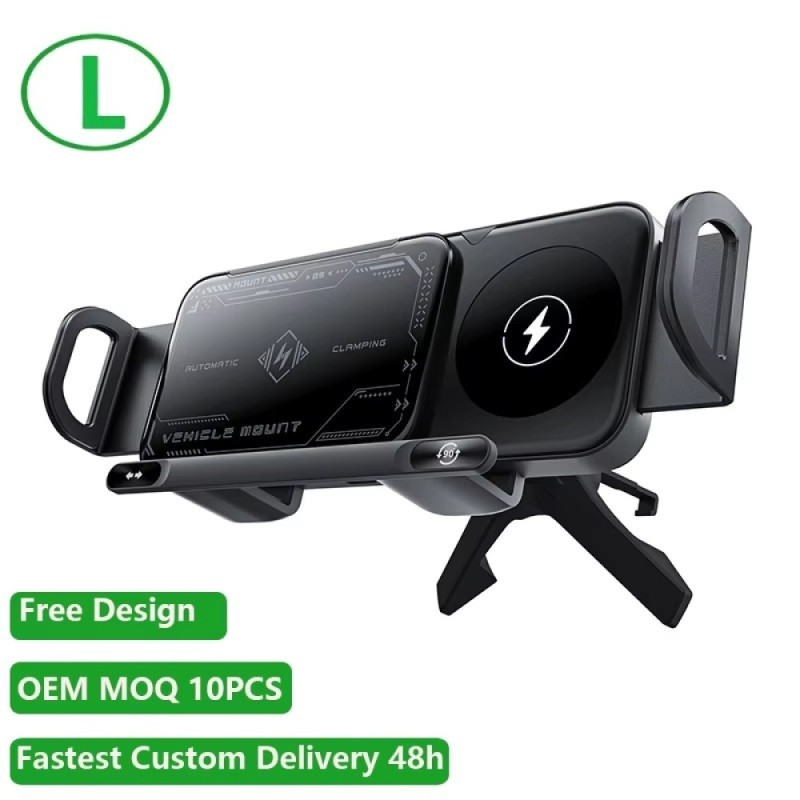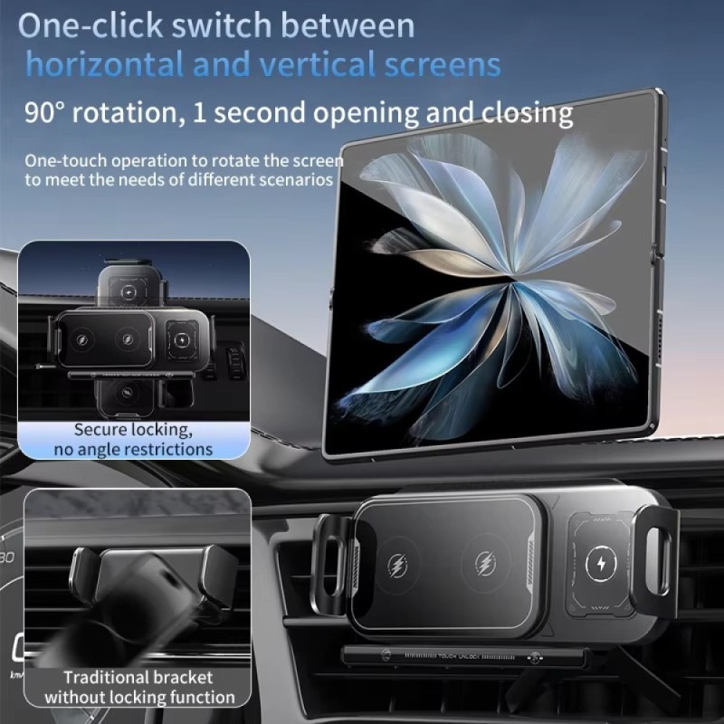 অটো-ক্ল্যাম্পিং ঘূর্ণনযোগ্য কার মাউন্ট ফোন স্ট্যান্ড হোল্ডার ওয়্যারলেস চার্জার